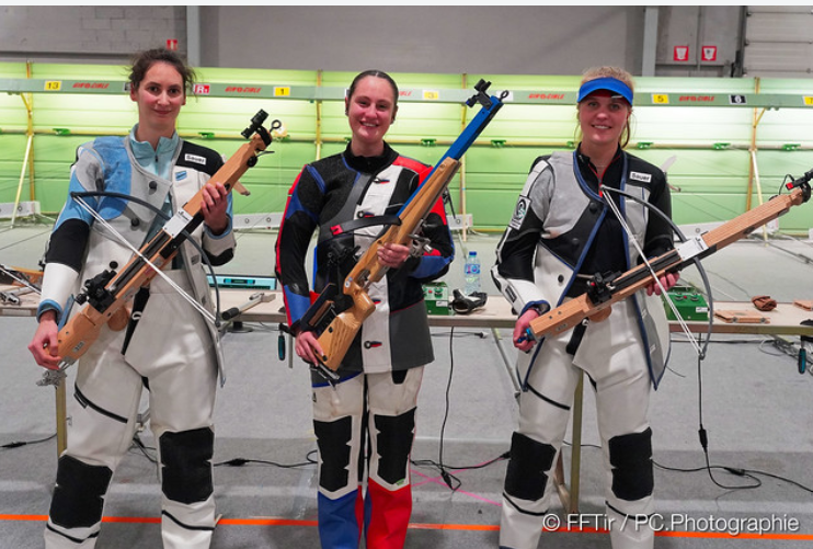 Médaille d'or pour la France en Carabine 50 m 3 positions, par équipe.