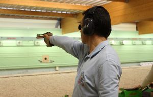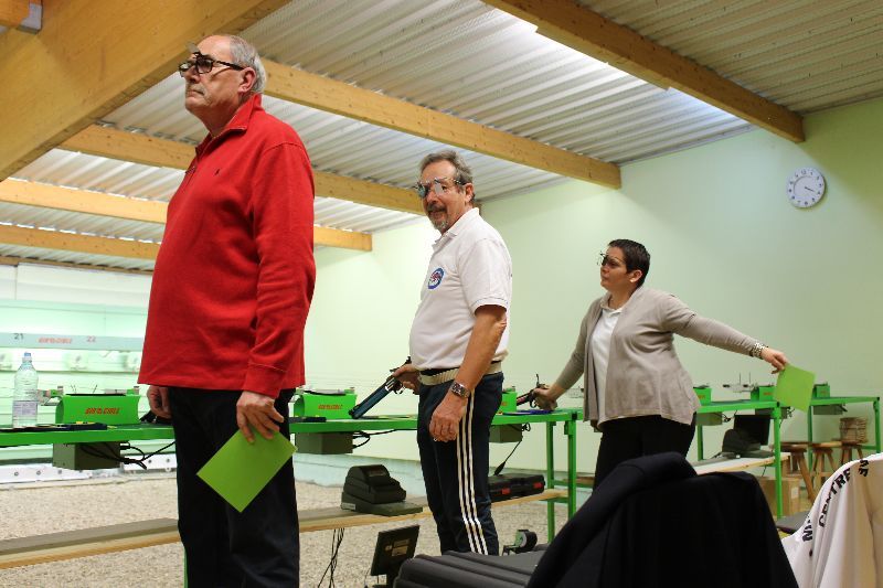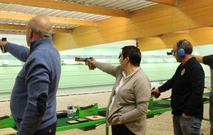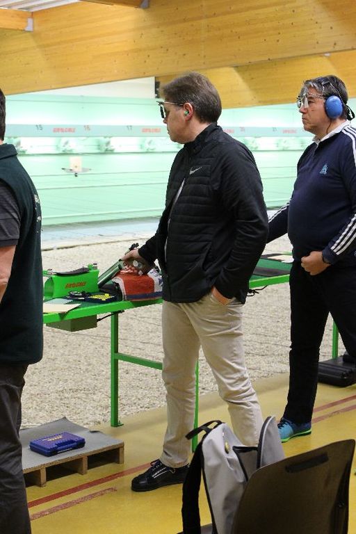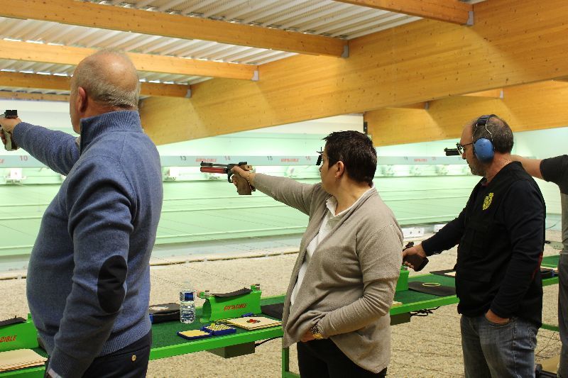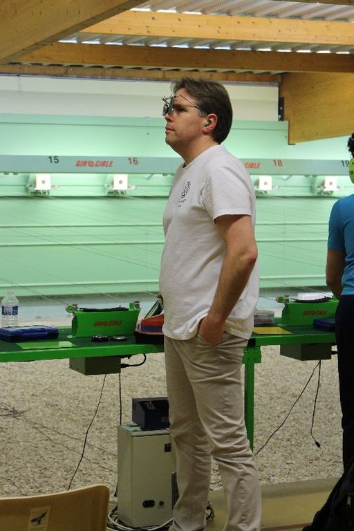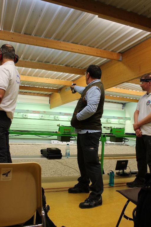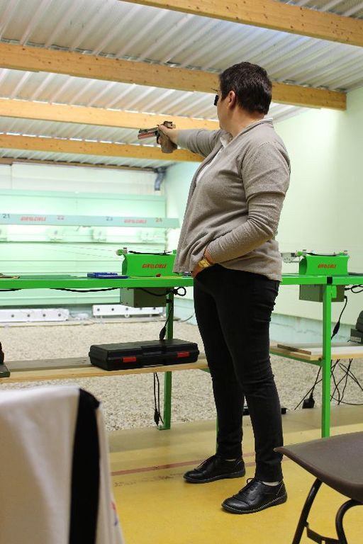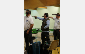 3 Pistoliers se suivaient à 3 pts d 'écart , le meneur de tête fut Christophe.H , suivi de Pascal T d '1 pt et Jean-Pierre P à 3 pts du 1 de l'équipe , Dominique K et Agnès M ont eu le plaisir de découvrir cette compétition .