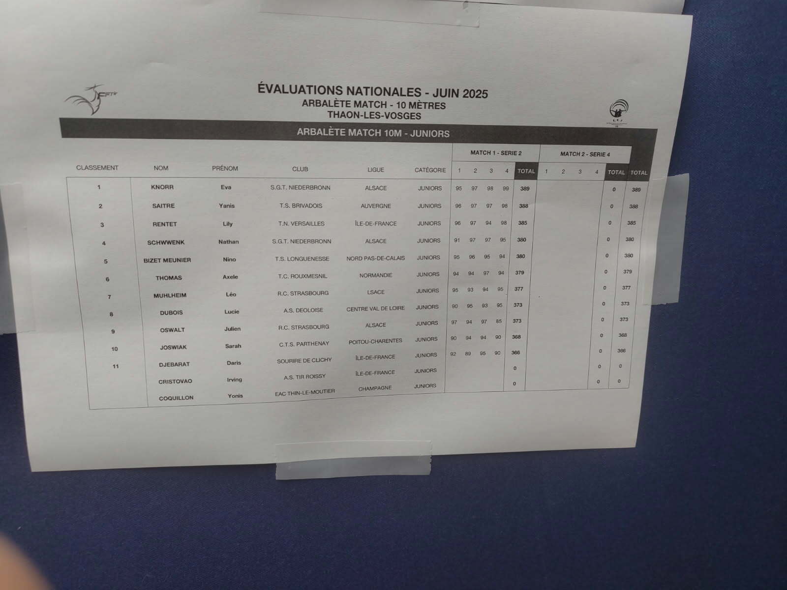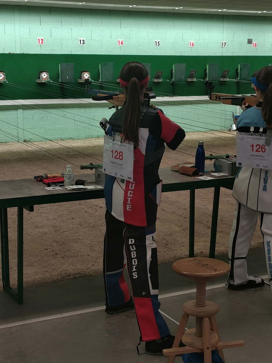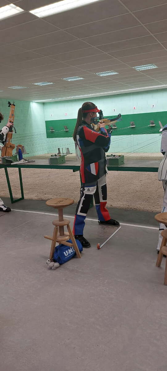 Première journée d'évaluation nationale Arbalète Match 10m pour Lucie qui se classe 8ème avec un score de 373/400.